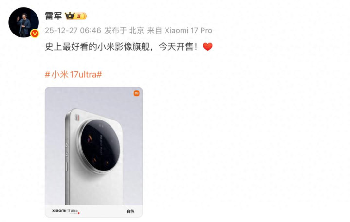 雷军此前在发布会上表示:“小米17 Ultra不仅是一款手机恒信策略,更是小米对极致科技与美学追求的体现。”