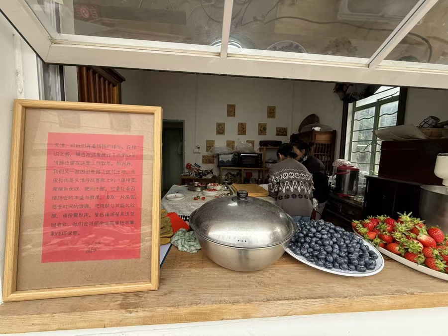 准备婚宴餐食的村舍有个好听的名字——路食记。每月都有各地朋友带着食材前来做饭,“空调、冰箱、烤箱、桌椅都是二手的,这是需要自己动手才能好好吃饭的餐厅。”